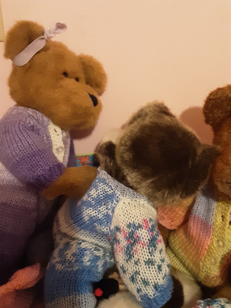 Mary has quite a stash of purchased crocheted outfits that should fit hitty alla and she can not hardly wait to model them.