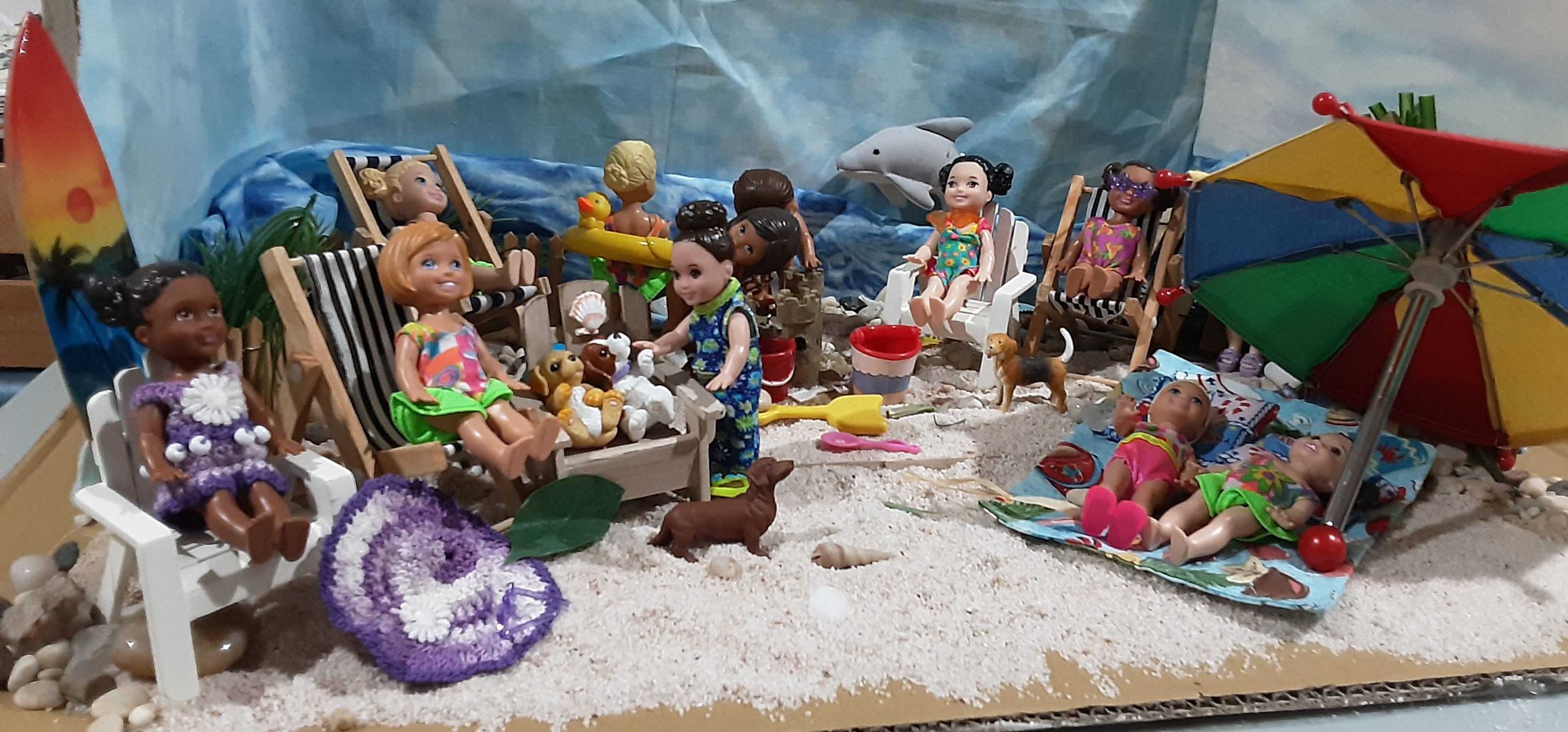 These scenes were created last year when our.little kelly friends went to the beach. We had a lot of fun setting up these scenes and they were particularly enjoyed by miss Mary’s sister geri who gave the scene her approval. Geris approval of anything creative done by miss mary was so special as miss mary respected geris artistical talents to a great degree.