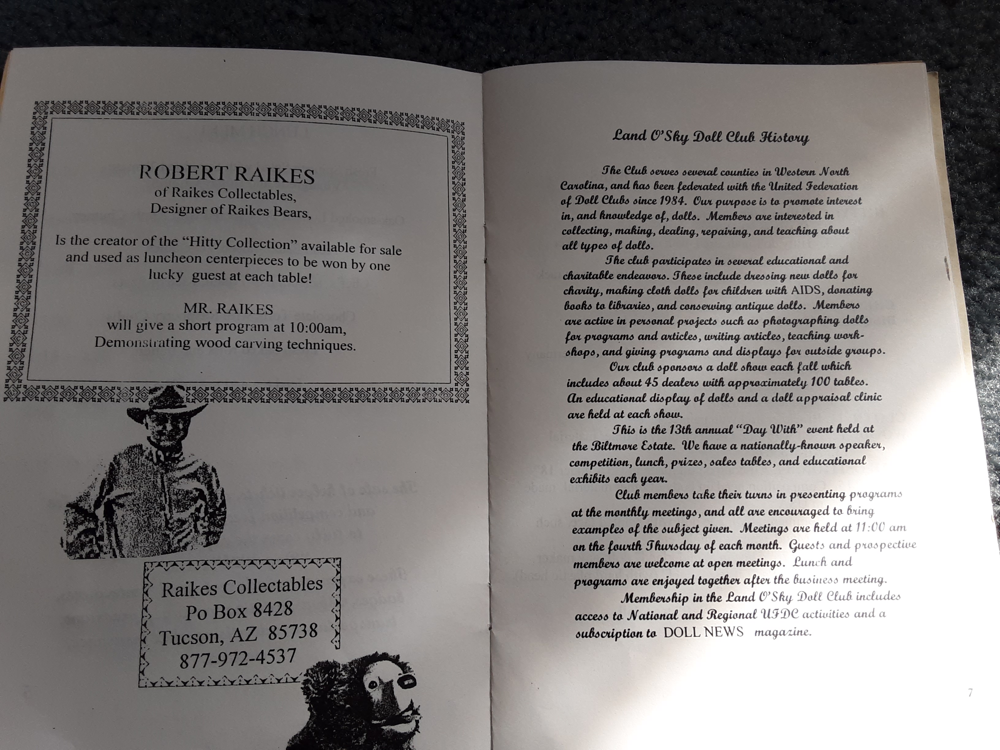 I was adopted by Miss Mary on March 27th, 2004 while she was in attendance at a luncheon sponsored by Land of Sky Doll Club of Western North Carolina which was held at the Deer Park Inn at the Biltmore Estate in Ashevilke, NC.